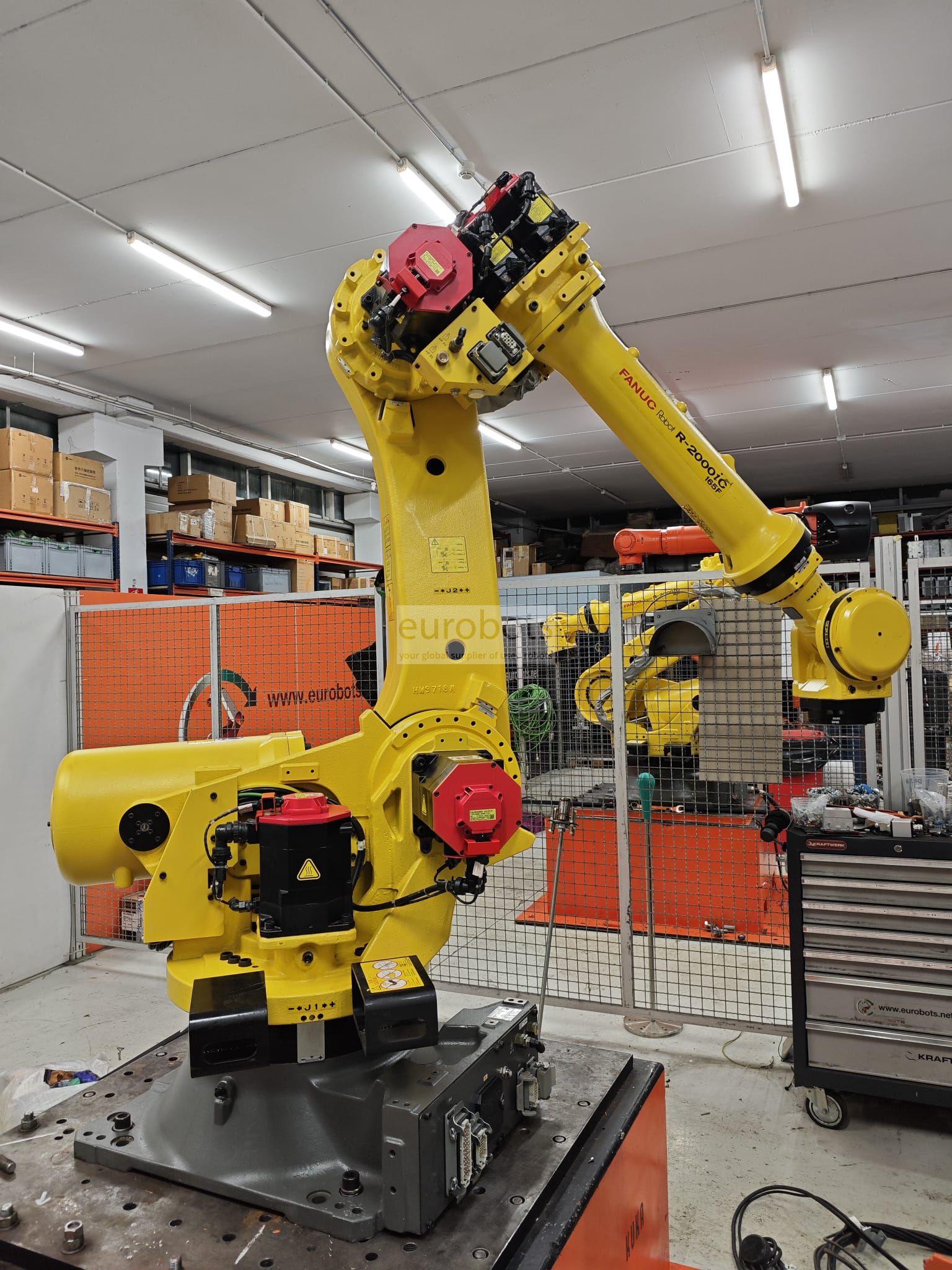 R-2000iC / 165F 6-Achsen-Multipropose-Industrieroboter für maximale Nutzung des Arbeitsbereichs und Nähe zu anderen Robotern. Es kann eine Nutzlast von 165 kg bewältigen, ist ein flexibler Roboter mit einem unglaublich dünnen Handgelenk, das ausgezeichnete Zykluszeiten bietet, geeignet für Punktschweißaufgaben, Materialhandhabung und anderen Anwendungen in der Automobilindustrie.