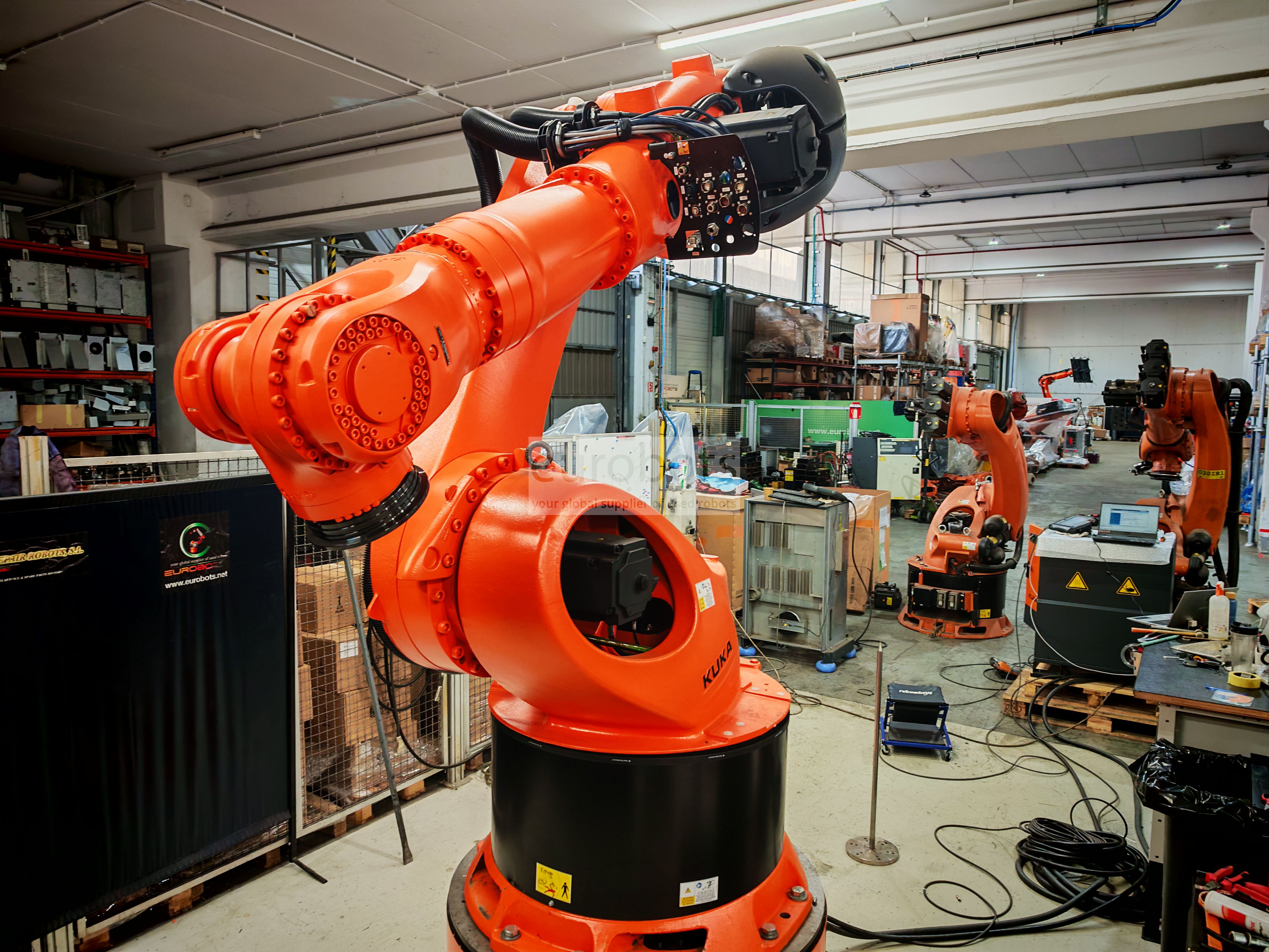 KUKA KR 420 R3330 Cette nouvelle génération de robots Kuka est aérodynamique conçue pour fournir un ajout facile aux conceptions de cellules avec des espaces restreints, elle est idéale pour les travaux à forte charge, le KR 420 R3330 offre des performances élevées et une qualité de production maximale grâce à sa polyvalence, sa puissance et la technologie kuka de pointe, les coûts de maintenance minimaux, ont le niveau de protection IP65 et IP67. Idéal pour les travaux lourds avec des charges allant jusqu'à 420 kg, il est disponible en variantes résistantes à la chaleur, à la poussière et à l'eau.
